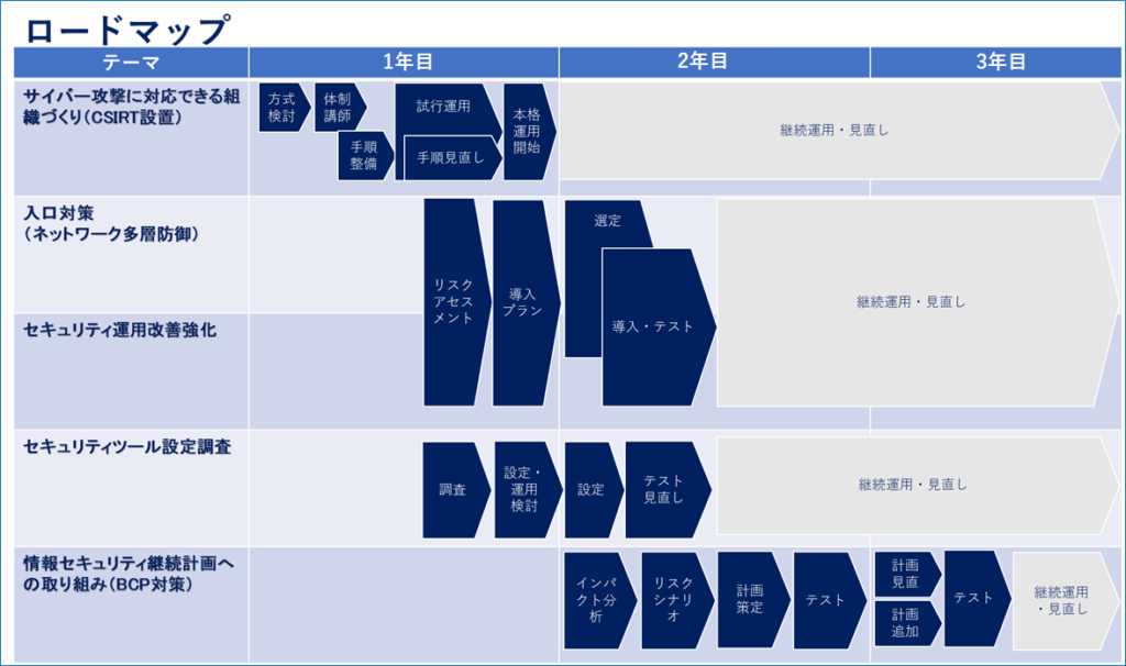 【サイバーセキュリティ対策のロードマップ策定例】
