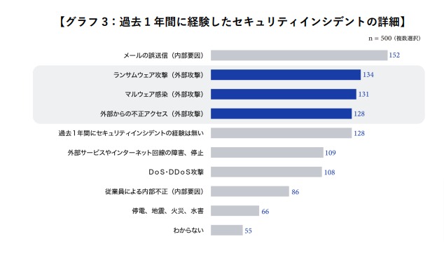 最も多かったのは「メールの誤送信」という内部要因による問題だったが、「ランサムウェア攻撃」や「外部からの不正アクセス」など、外部要因による被害も深刻な状況であることが明らかになっている。