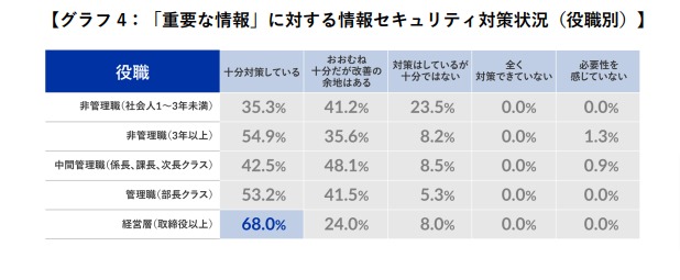 経営層の約7割が「万全の対策が取れている」と回答。