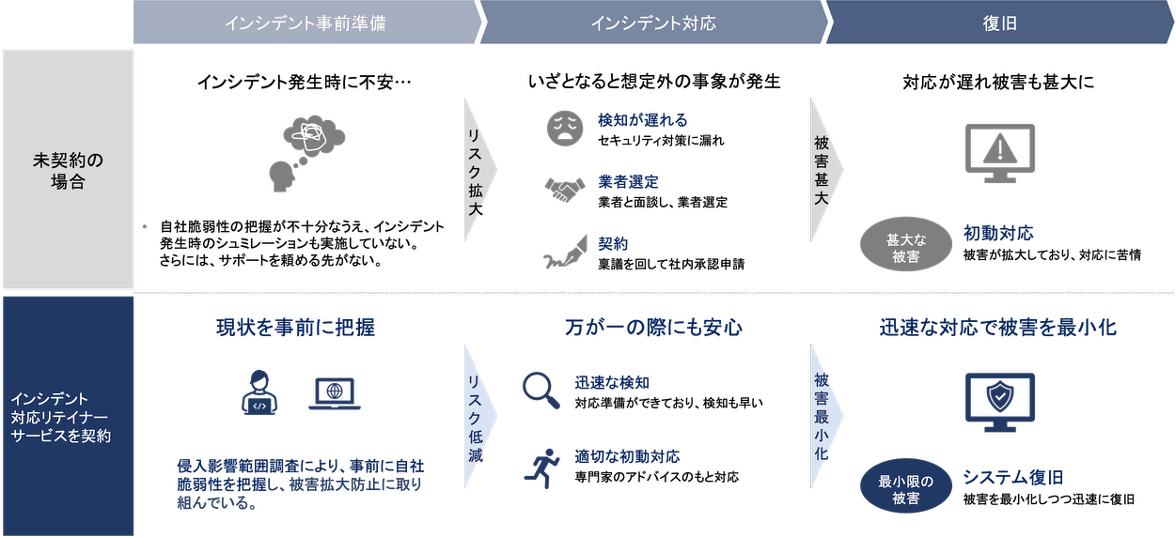 事前契約を結びインシデント発生時の対応をあらかじめ定義しておくことで、万が一の